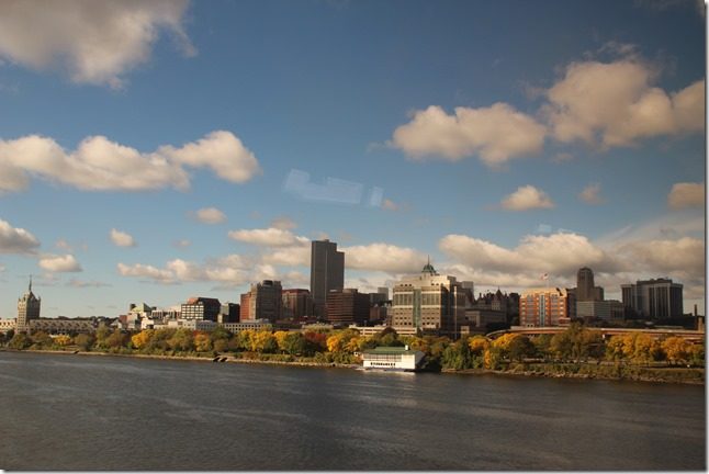 We made it over the border and thought everything was good to go. Wrong. All the comfort and ease of the train ride was tainted when we pulled up in the Niagara, Canada, station and the train came to a complete halt, the engines were turned off, and the entire crew just left! And there we sat for well over an hour. One of the more irritated, aggressive passengers got off the train and searched for some explanation. She came back with the news that the crews were changing and one side or the other was conducting a random drug test. We kidded that they were just randomly taking drugs! We also decided that surely someone on the train could figure out how to drive it since it is computerized, and we should just mutiny and get ourselves the rest of the way to the departure point. We did have a lively conversation with a man from New York going to Canada on business and a woman and her son, both with dual citizenship, who live in New York who were going to Canada to celebrate the Canada Thanksgiving, and then they would later also celebrate our Thanksgiving in New York. And in both cases she will be at a relative’s house and won’t have to cook the dinner! What a deal. I asked her what dishes they would eat in Canada, and she said pretty much the same things we serve.