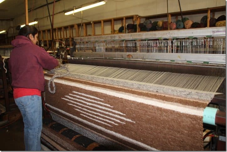 Anna Ruiz, who has been with the company many years, is working on one of the smaller looms.
