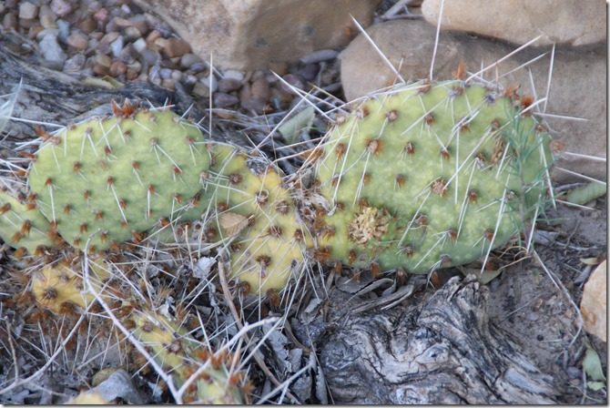 When I went out in search of burned cactus to share with you, I discovered that I really didn’t have too many cactus that had burned; it was my succulents that suffered the most, so I guess that is why I was so focused on them last week. But this little horse crippler that I had transplanted without regard to the heat suffered some burns on its edges and is now a faded green.