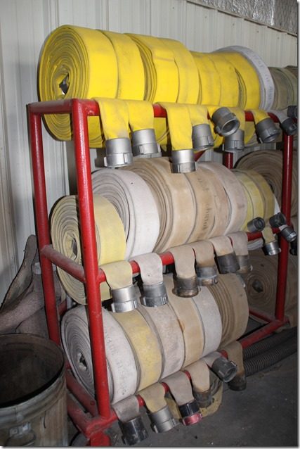 This rack of pumper hoses were neatly hung behind that pumper truck. They are routinely cleaned after each fire.