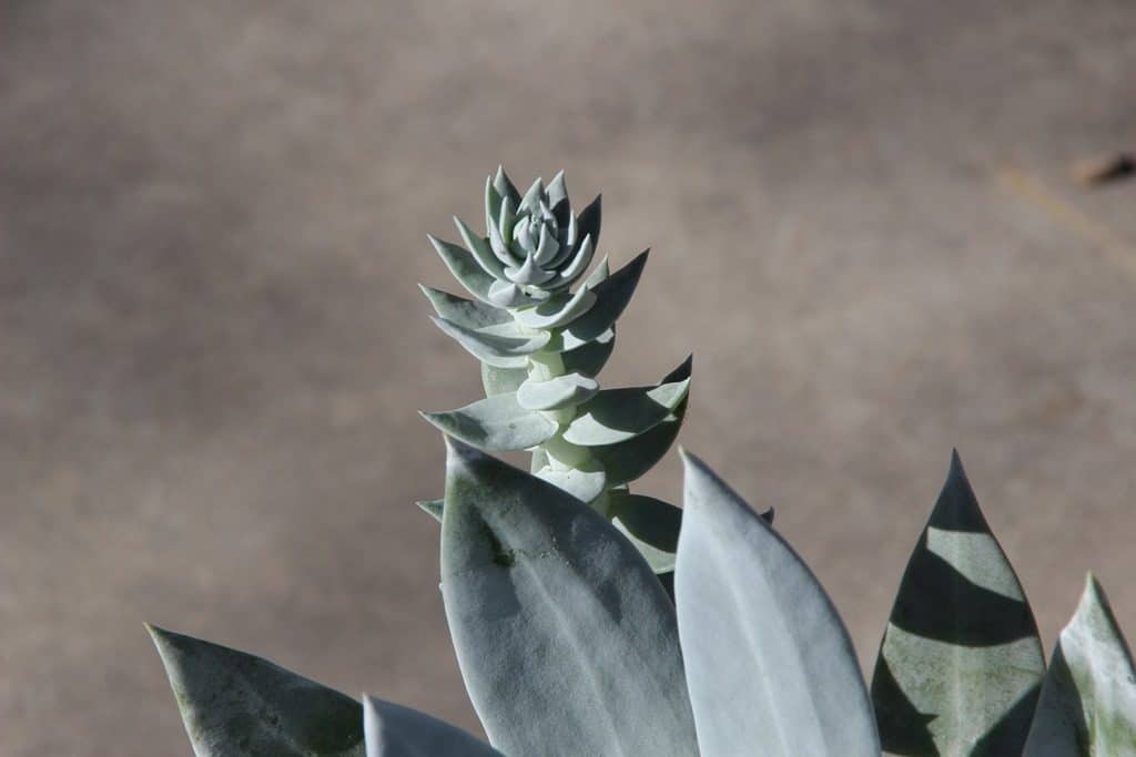 In fact, it has been happy enough to bloom twice for me, as you can see here. The flowers on some dudleyas are more impressive than this, are a bit larger and have more color, but really, what I like about this particular one, Dudleya pulverulenta, is that soft gray/blue color of the plant.