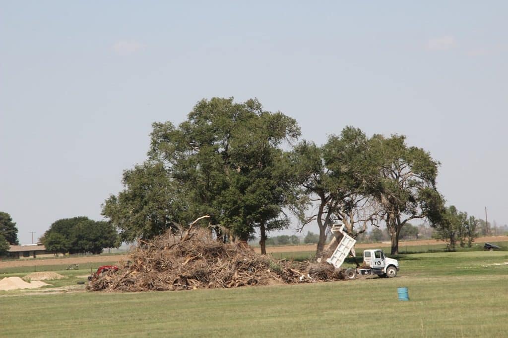The golf course always has a pile of fallen limbs collected from all over the course during the year, so the beginnings of a bonfire were already there; the city added to it, as they have done for perhaps the last ten years or so.  The last load for this year was added Wednesday afternoon, maybe one or two loads Thursday morning, and then the road was silent.