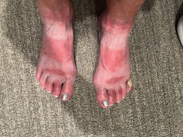 So, after twelve hours, counting that hour sitting on I-40, I made it home with my sunburned feet to three cats and one dog who seemed really glad to have me home.