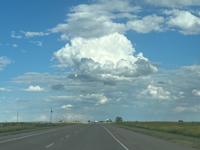 We finally got going after that hour, so I enjoyed the beautiful clouds the closer I got to the Texas border. Took this picture at Melrose.