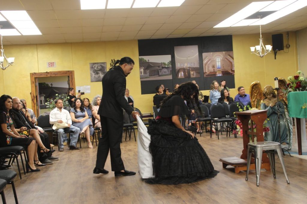 Grandmother Angela Reyes’ dance group from Lubbock, Ballet Folklorico Fiesta Del Sol, were the next entertainment. The group performs traditional Mexican folk dances, complete with elaborate dresses and intricate dance moves. In their first dance, they came in with white candles that they put on their heads during the dance. And they never fell off!. There were other dances as well, along with some young people who made all the right moves.